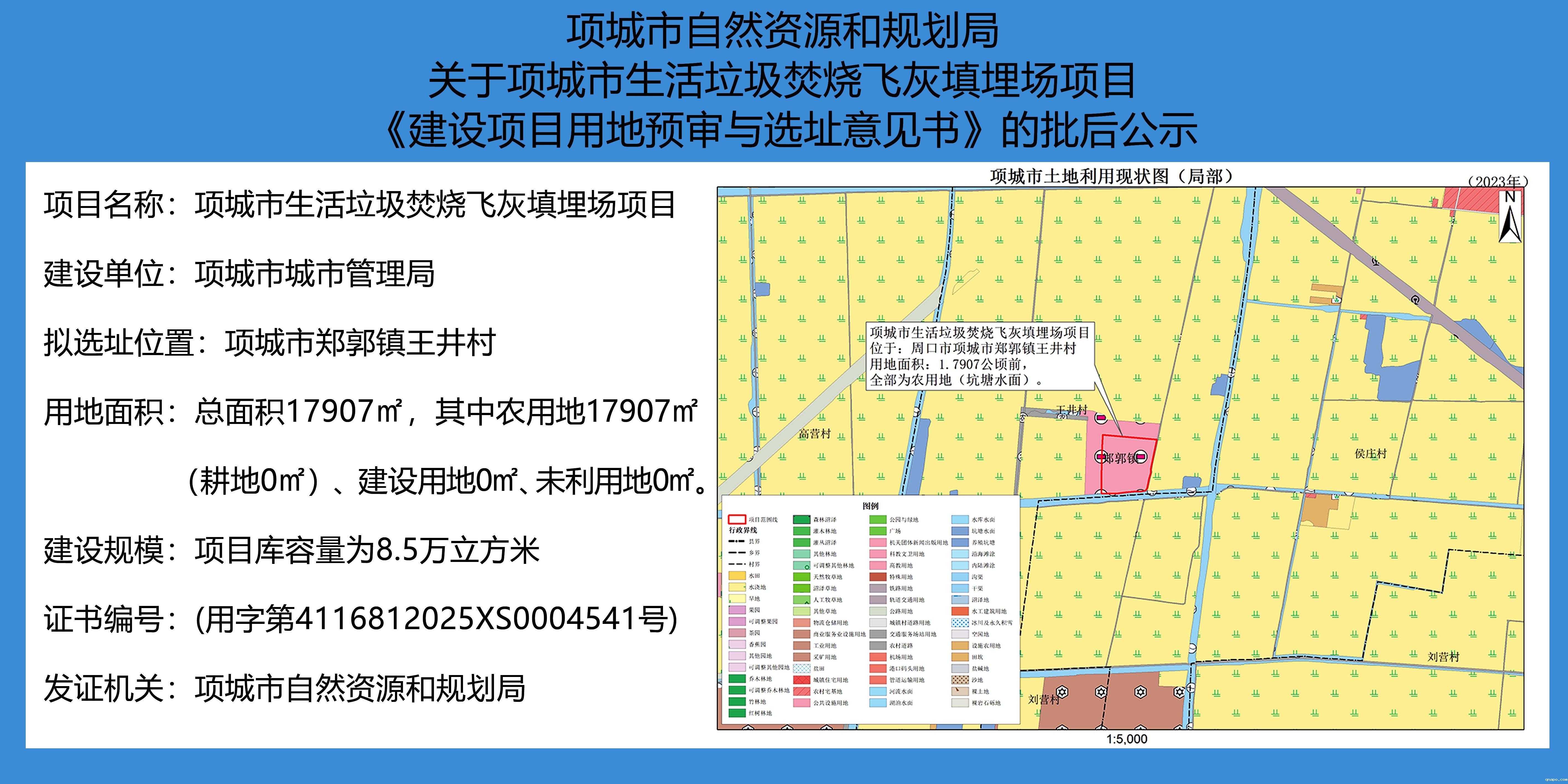 taptap点点生活垃圾焚烧飞灰填埋场项目《建设项目用地预审与选址意见书》的批后公示