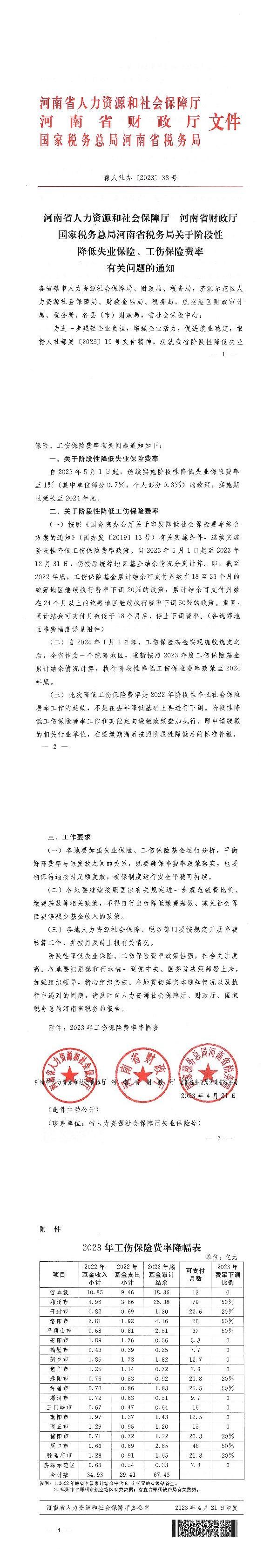 豫人社办【2023】38号关于阶段性降低失业保险、工伤保险费率有关问题的通知