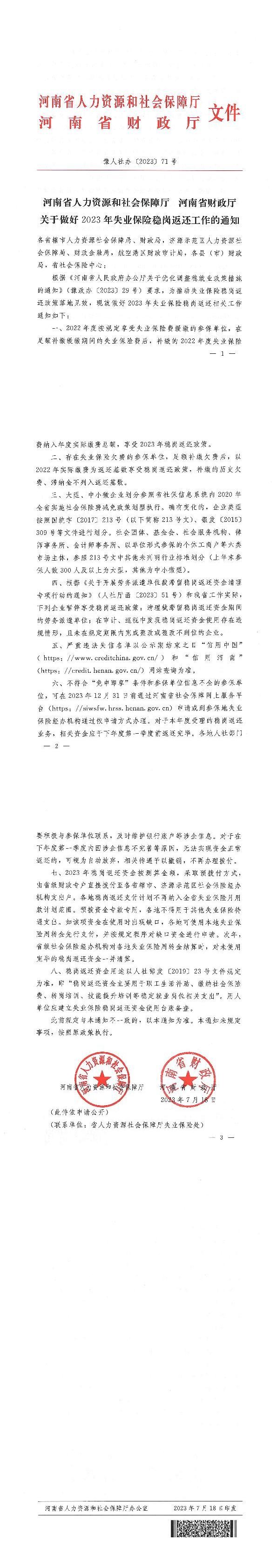 河南省人力资源和社会保障厅 河南省财政厅关于做好2023年失业保险稳岗返还工作的通知