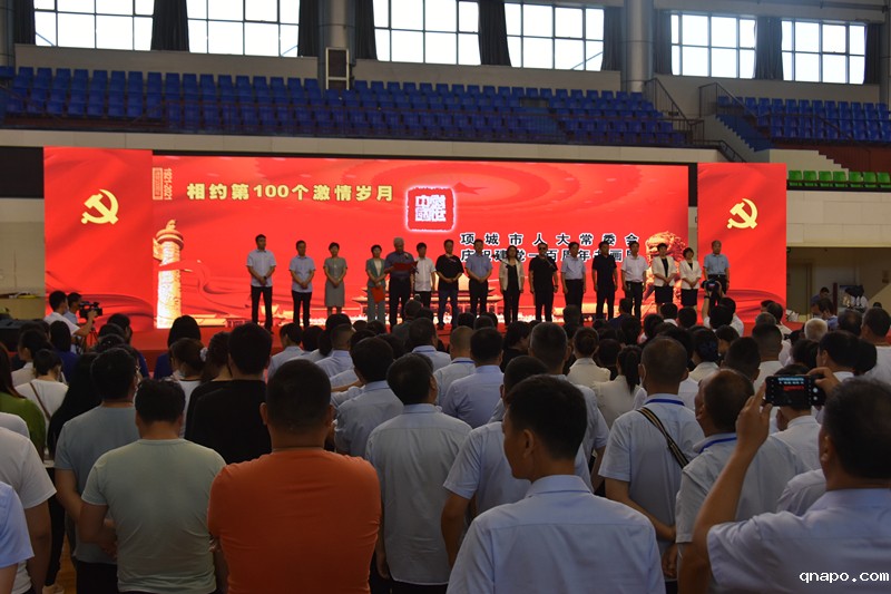 仪式上,近百名艺术家及书法爱好者现场挥毫泼墨,共同创作了百米长卷“百寿图”,共同庆祝党的百年华诞。